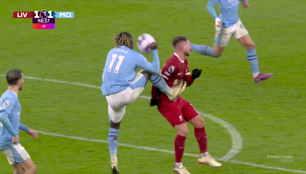 Στο 99' της αναμέτρησης ο Ντοκού βρίσκει καθαρά με τις τάπες στο στήθος τον ΜακΆλιστερ, με τον διαιτητή Μάικλ Όλιβερ και το VAR να κλείνουν τα μάτια σε καταφανέστατο πέναλτι που θα μπορούσε να δώσει τη νίκη στους Reds του Γιούργκεν Κλοπ.
