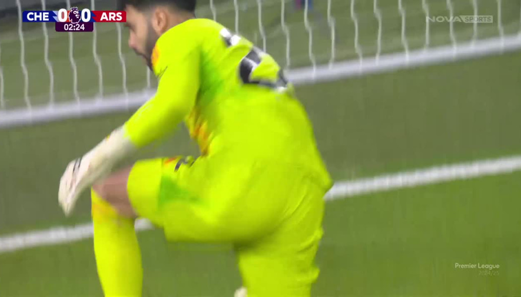 Εντυπωσιακή φάση στο ντέρμπι Τσέλσι - Άρσεναλ, με τον Ισπανό γκολκίπερ να... ίπταται και να αποκρούει.