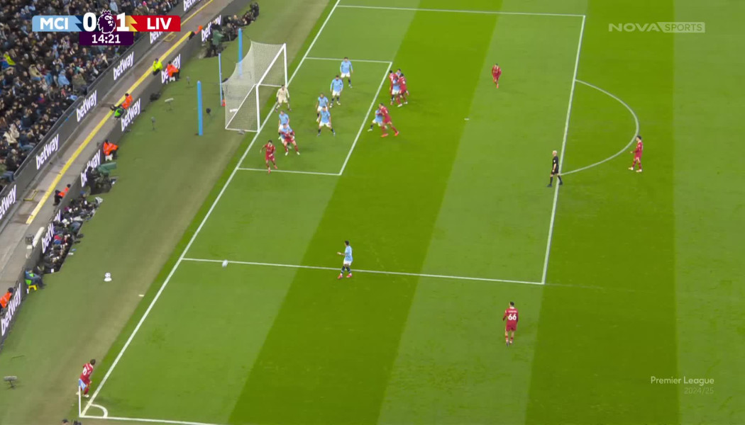 Στο 14ο λεπτό του ντέρμπι της Premier League ο Σαλάχ ανοίγει το σκορ για την Λίβερπουλ, έπειτα από συρτή εκτέλεση κόρνερ.