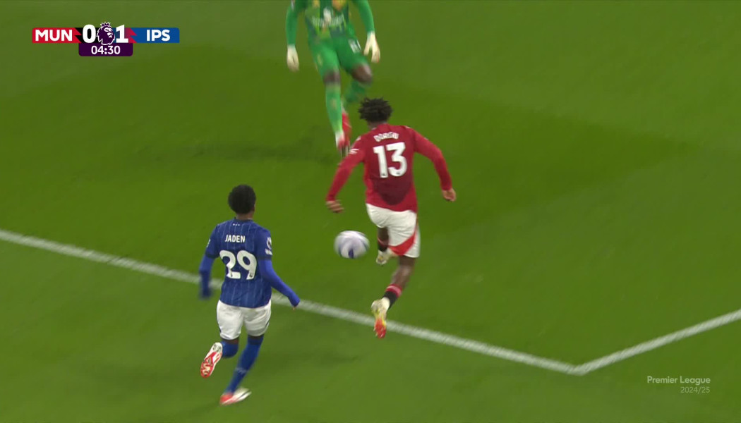 Ο Ντόργκου της Μάντσεστερ Γιουνάιτεντ έδωσε έτοιμο γκολ στον Φίλοτζιν για το 0-1 της Ίπσουιτς στο 4ο λεπτό.