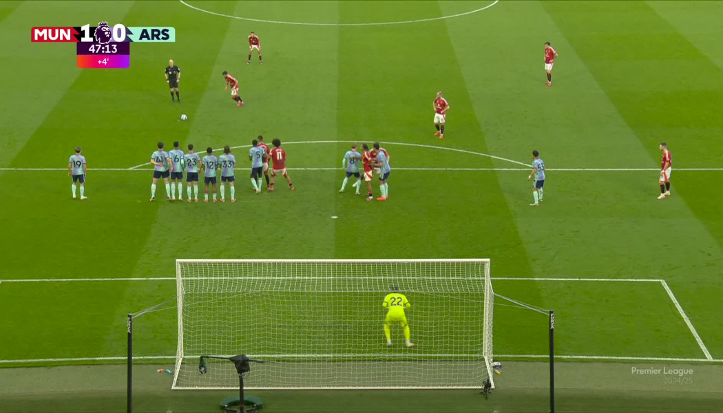 Φοβερή εκτέλεση φάουλ από τον Πορτογάλο μέσο της Μάντσεστερ Γιουνάιτεντ.