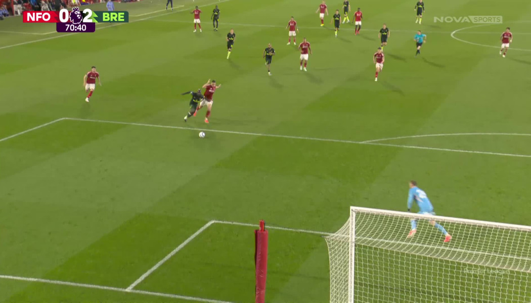 Στο 70ό, ο Γιοάν Ουίσα μπήκε στα παπούτσια του Κέβιν Σάντε, εκμεταλλεύτηκε με παρόμοιο τρόπο μια βαθιά μπαλιά από την άμυνα της Μπρέντφορντ στην άμυνα της Νότιγχαμ, που αυτή τη φορά έβγαλε ο Μαρκ Φλέκεν, και σκόραρε για την ομάδα του