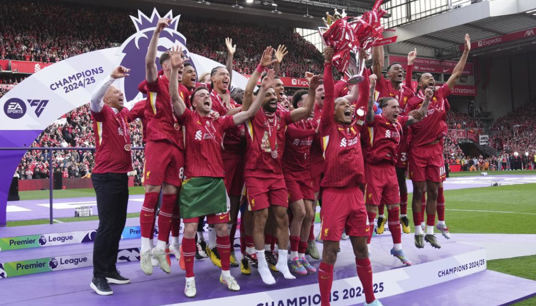 O Bίρτζιλ Φαν Ντάικ σήκωσε την κούπα κι επικράτησε πανζουρλισμός στις εξέδρες από τους φίλους των πρωταθλητών Αγγλίας.