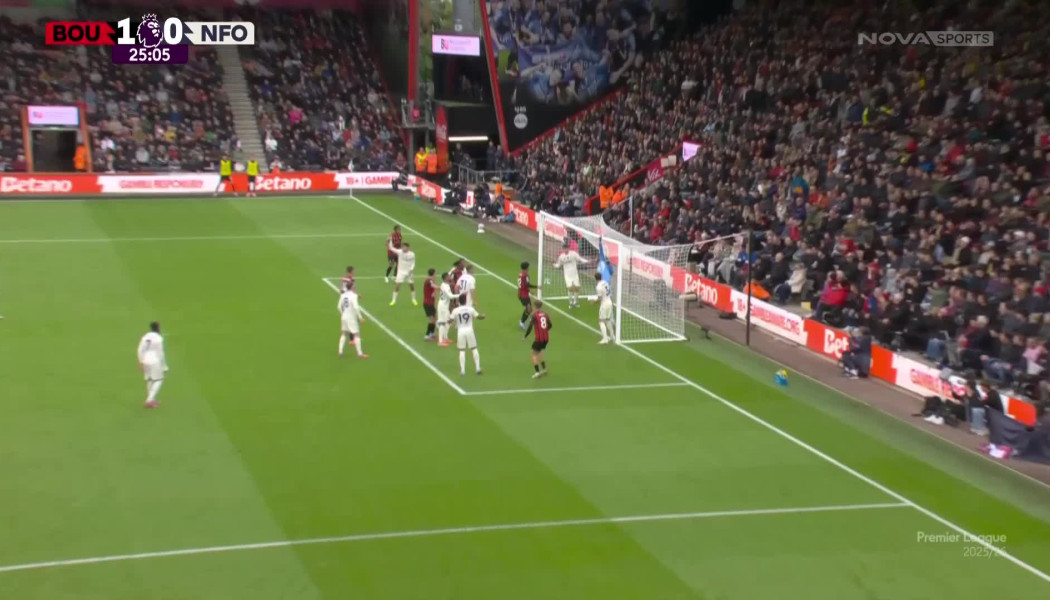 Η Μπόρνμουθ βρήκε το προβάδισμα στο 25’, όταν ο Ταβερνιέ σκόραρε απευθείας από εκτέλεση κόρνερ, αιφνιδιάζοντας τον τερματοφύλακα της Φόρεστ για το 1-0.