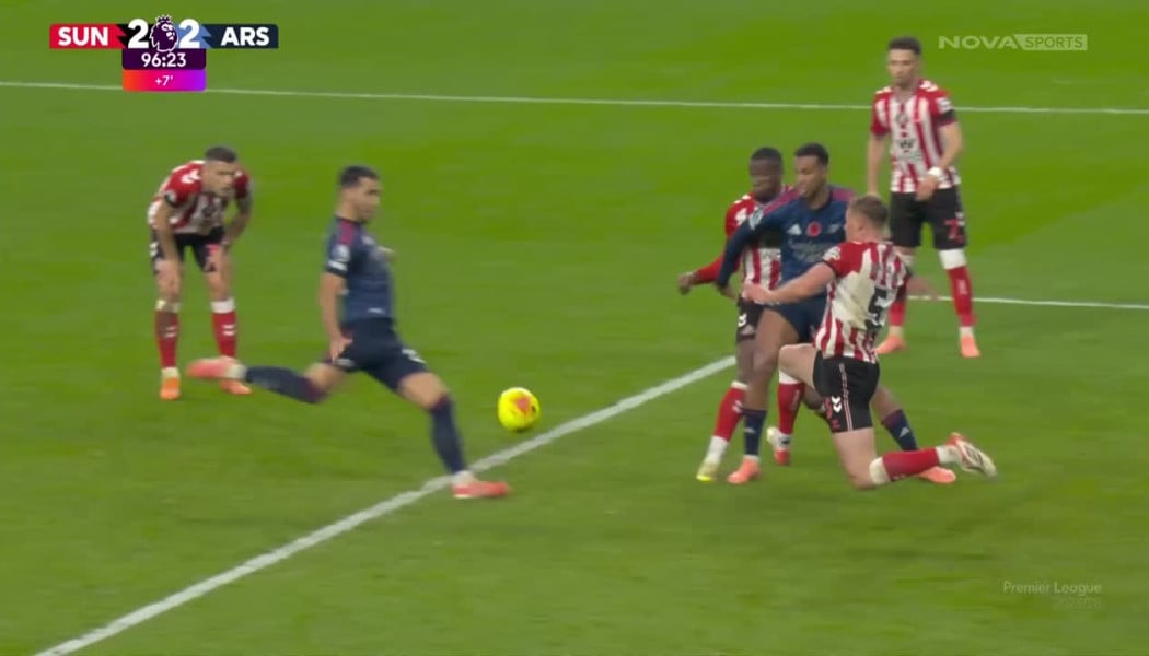 Παρ' όλα αυτά, οι Κανονιέρηδες είχαν μία τελευταία -και μάλιστα τεράστια- ευκαιρία να πάρουν τη νίκη στο 7ο λεπτό των καθυστερήσεων, όμως πρώτα ο Ρικάρντο Καλαφιόρι και έπειτα ο Μικέλ Μερίνο δεν κατάφεραν να σκοράρουν, σε μία απίστευτη φάση.