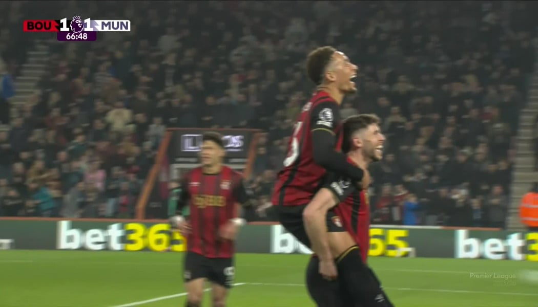 Όλα έγιναν στο δεύτερο ημίχρονο, με τη Γιουνάιτεντ να προηγείται στο 61' με το πέναλτι του Φερνάντες και με το αυτογκόλ του Χιλ στο 71', όμως η Μπόρνμουθ ισοφάρισε δύο φορές με τους Κρίστι (67') και Κρούπι (81' πέναλτι). Πριν το πέναλτι των γηπεδούχων αποβλήθηκε με απευθείας κόκκινη για το μαρκάρισμά του, με τη Γιουνάιτεντ να μην μπορεί να βρει λυσεις στη συνέχεια με παίκτη λιγότερο στο γήπεδο.