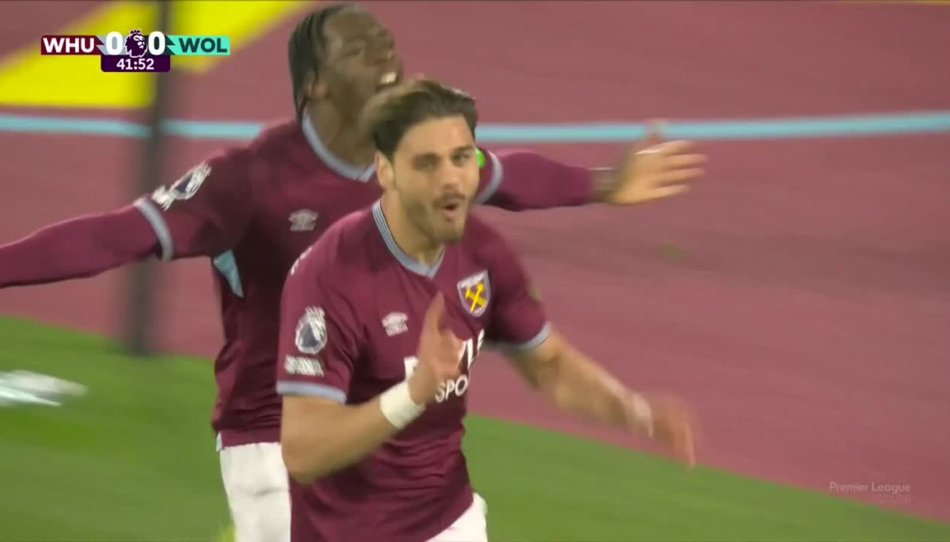 Ο Ντίνος Μαυροπάνος εκμεταλλεύτηκε τη "γλυκιά" σέντρα του Τζάροντ Μπόουεν και με εξαιρετική κεφαλιά έστειλε την μπάλα στα δίχτυα της Γουλβς, κάνοντας το 1-0 για τη Γουέστ Χαμ.