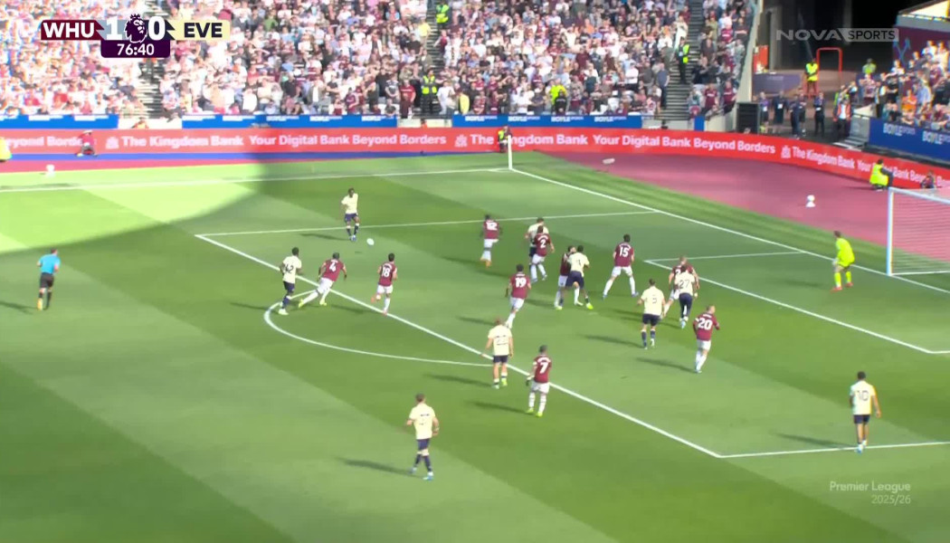 Η Γουέστ Χαμ νίκησε 2-1 την Έβερτον, σε ένα ματς που χάθηκε μία απίθανη ευκαιρία για γκολ των φιλοξενούμενων, με τον Τόμας Σούτσεκ να αποσοβεί το γκολ πάνω στη γραμμή.