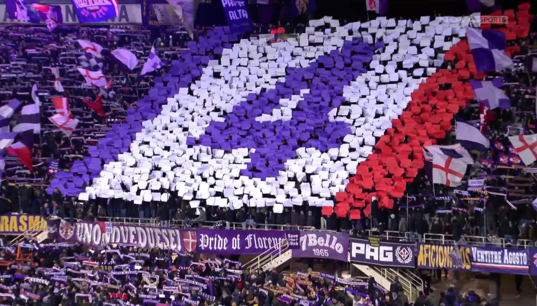 Πριν τη σέντρα στο Φιορεντίνα - Έμπολι οι οργανωμένοι οπαδοί των γηπεδούχων με κορεό έστειλε μήνυμα στήριξης στον Εντοάρντο Μποβέ.
