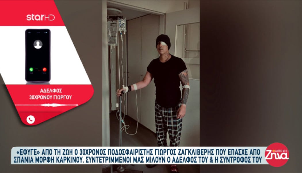 Συντετριμμένοι είναι η σύντροφος, η οικογένεια και οι φίλοι του ποδοσφαιριστή Γιώργου Ζαγκλιβέρη που «έφυγε» σε ηλικία 30 ετών από σπάνια μορφής καρκίνου.