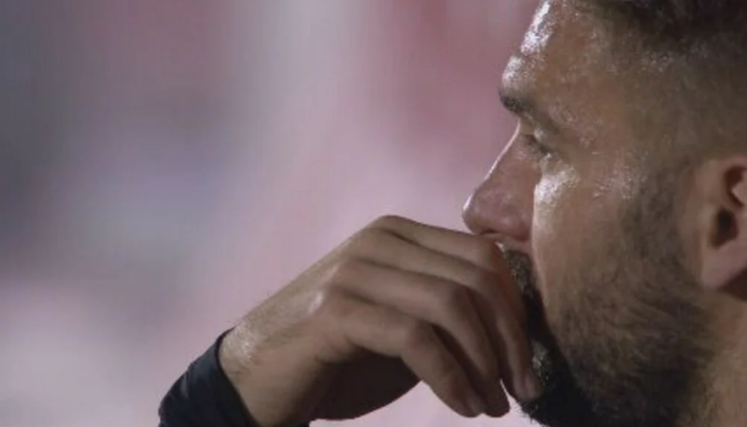 Ο Ολλανδός αμυντικός, που έχει χάσει τη θέση του στην αρχική ενδεκάδα μετά την άφιξη του Φατίχ Τερίμ, είχε μείνει στον πάγκο μετά το τέλος και κοιτούσε προφανώς απογοητευμένος το... κενό.