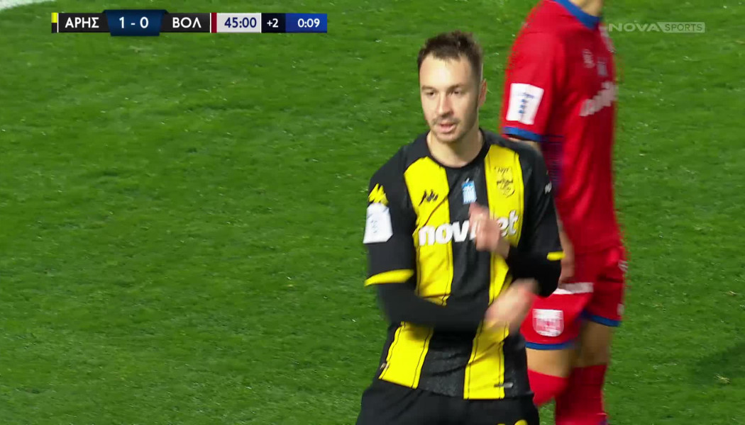 Άρης - Βόλος: Ο Λορέν Μορόν σπατάλησε μία ασύλληπτη ευκαιρία προς κενής εστίας στο 44', όμως δεν πτοήθηκε και βρήκε τον δρόμο προς τα δίχτυα για το 1-0 στο 45+1'.