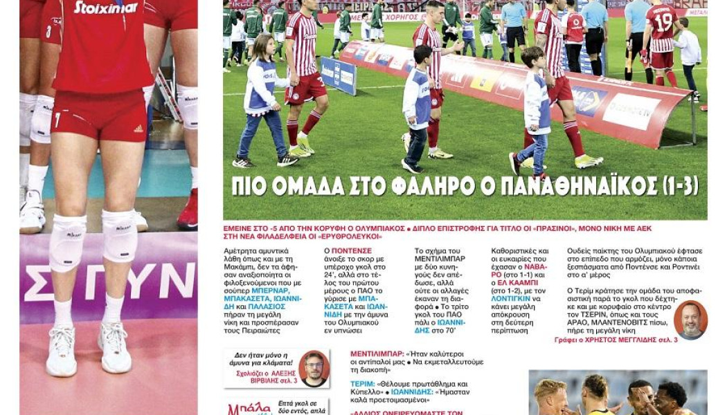 "Ο Τερίμ κράτησε την ομάδα του αποφασιστική παρά το γκολ που δέχτηκε και με κορυφαίο στο κέντρο τον Τσέριν, όπως και τους Αράο, Μλαντένοβιτς πίσω, πήρε τη μεγάλη νίκη", αναφέρει το σημερινό, πρωτοσέλιδο δημοσιεύμα.