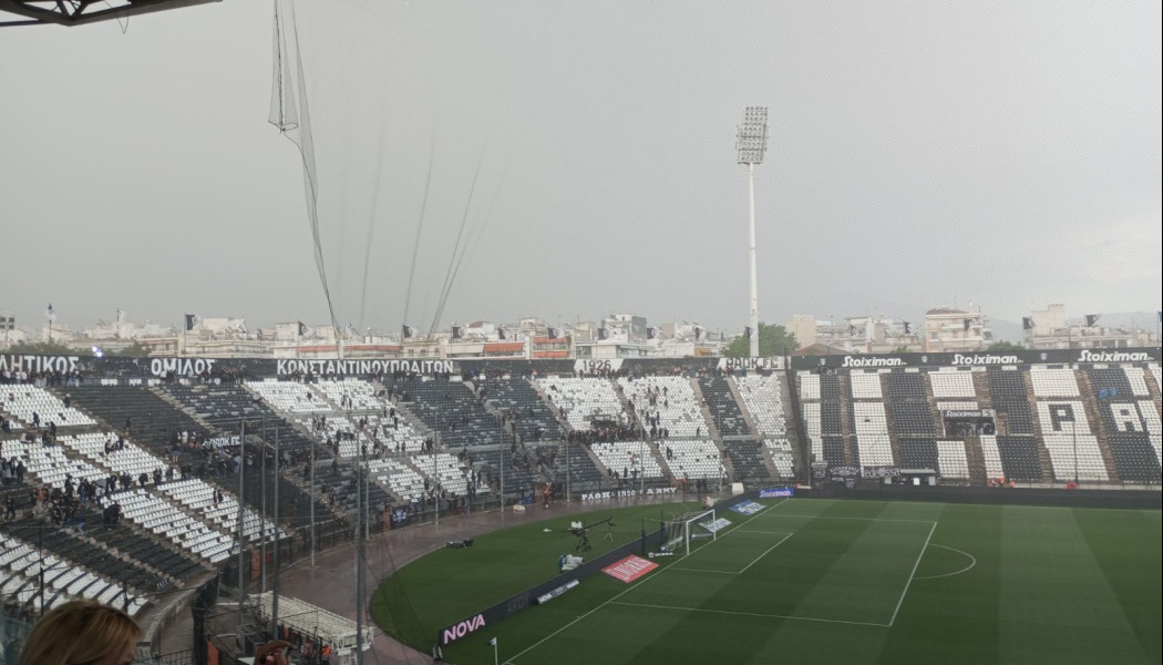 Ωστόσο, ο καιρός τα χάλασε στους οπαδούς του ΠΑΟΚ καθώς μία πολύ δυνατή βροχόπτωση τούς ανάγκασε να εγκαταλείψουν τις θέσεις τους, αναζητώντας στέγη!