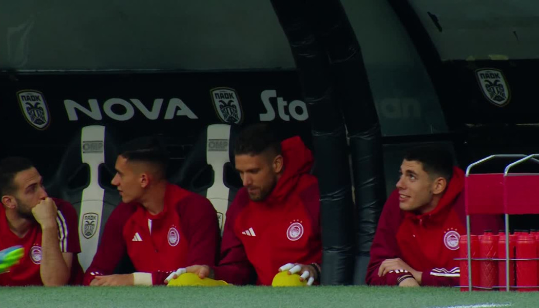 Κεφάτος στον πάγκο του Ολυμπιακού ο Έλληνας γκολκίπερ, που βλέπει το ντέρμπι ως αναπληρωματικός.