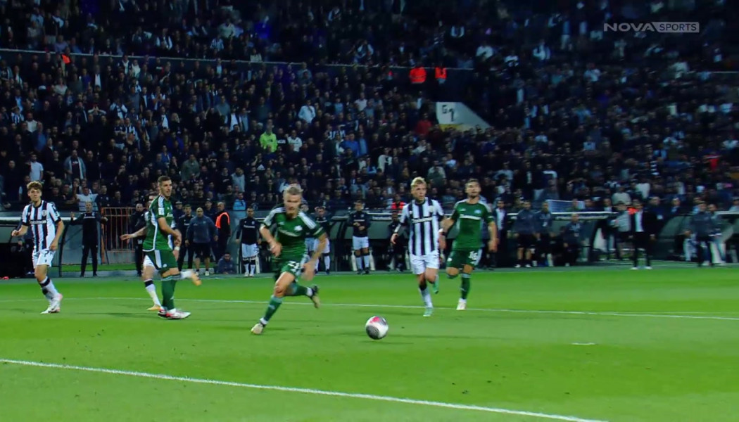 ΠΑΟΚ - Παναθηναϊκός: Προβάδισμα για τον Δικέφαλο του Βορρά στην Τούμπα στο ντέρμπι με τους Πράσινους, μιας και στο 37΄ο Πέρεθ θα κάνει τραγικό λάθος, με τον Κωνσταντέλια να κλέβει την μπάλα, να πασάρει στον Τάισον και τον Βραζιλιάνο με κοντινό πλασέ να κάνει το 1-0.