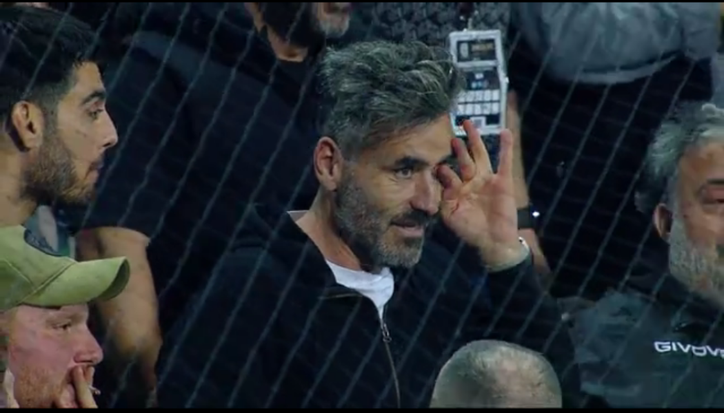 Η κάμερα μάλιστα "συνέλαβε" τον γνωστό υποστηρικτή του Δικεφάλου, Γιώργο Μαυρίδη, να συγκινείται μετά το γκολ του Βιεϊρίνια, που διαμόρφωσε το 3-1.