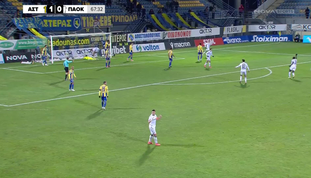 Αστέρας Τρίπολης - ΠΑΟΚ: Στα... ίσια φέρνει στο παιχνίδι στην Τρίπολη ο Δικέφαλος του Βορρά, μιας και στο 68' ο Κωνσταντέλιας θα βρει ωραία τον Ότο, με τον Ισπανό να κάνει το γύρισμα και τον Ντεσπόντοφ από κοντά να κάνει το 1-1 κόντρα στους Αρκάδες.