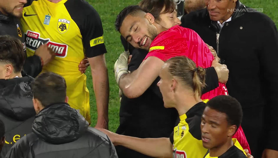 Όμορφες εικόνες μετά το φινάλε του αγώνα στην Τούμπα, ο Ματίας Αλμέιδα πήρε αγκαλιά τον Θωμά Στρακόσα.