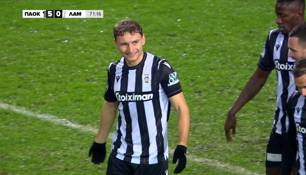 ΠΑΟΚ: Συνεχίζεται το... πάρτι του Δικεφάλου του Βορρά απεναντι στη Λαμία, μιας και στο 72' ο Σάστρε θα κάνει πολύ ωραία ντρίμπλα πάνω στον Βιτλή και θα γυρίσει την μπάλα, με τον Τσάλοφ με τακουνάκι να κάνει το 5-0 στην Τούμπα.