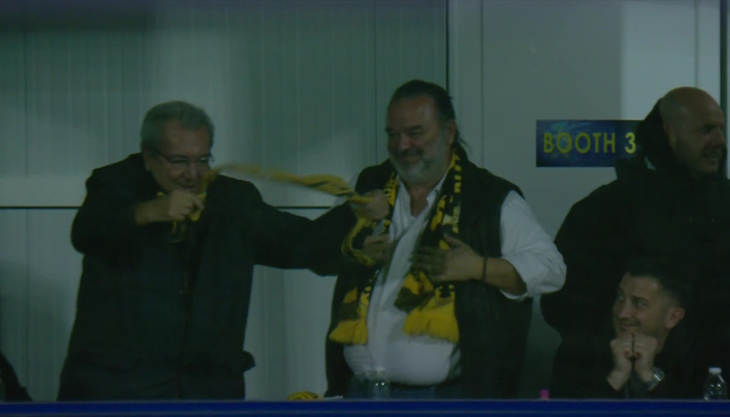 Οι παίκτες της ΑΕΚ πανηγύρισαν έξαλλα το γκολ μαζί με τον Ματίας Αλμέιδα, ενώ το ίδιο συνέβη και στο μπουθ του Μάριου Ηλιόπουλου!