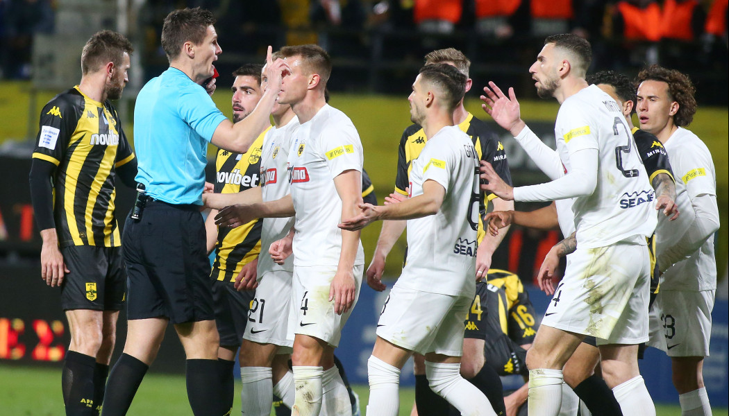 «Έχω πολλές αμφιβολίες για την αποβολή του Μήτογλου, είναι ένα φάουλ που έχει μεν πρόθεση να σταματήσει τον αντίπαλο, όμως δεν είναι αντιαθλητικό, ούτε είναι σε προφανή θέση για γκολ ο Μορόν. Για αυτό και ο VAR κάλεσε τον Ζίμπερτ να το δει. Ήταν χτύπημα η αποβολή, μετά αναγκάστηκε να αλλάξει το πλάνο, αλλά κατάφερε να μην κινδυνεύσει παρά μόνο μια φορά. Ο Αλμέιδα έβαλε παιδιά που ήταν φρέσκα και του βγήκε, το ματς τελείωσε στην περιοχή του Άρη. Πάλεψε ως το τέλος με ό,τι όπλα είχε για τη νίκη, δεν την πήρε αλλά την βοήθησαν τα αποτελέσματα του Παναθηναϊκού και του ΠΑΟΚ», πρόσθεσε.