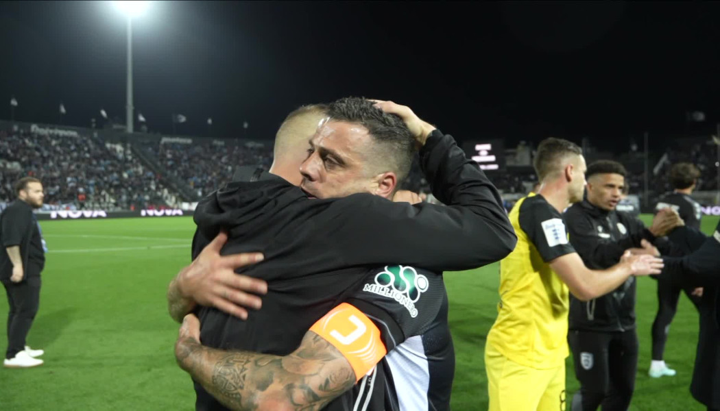 Με τη λήξη όλοι έτρεξαν πάνω στον Πορτογάλο, ενώ όλο το γήπεδο φώναζε ρυθμικά το όνομά του, με τον αρχηγό να μην αντέχει και να ξεσπάει σε κλάματα!