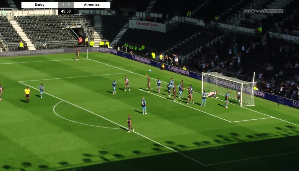 Ο Κένζο Γκούντμιν πέτυχε ένα μαγικό γκολ με απευθείας εκτέλεση κόρνερ και έδωσε προβάδισμα με 2-0 στη Ντέρμπι Κάουντι κόντρα στον Ατρόμητο.