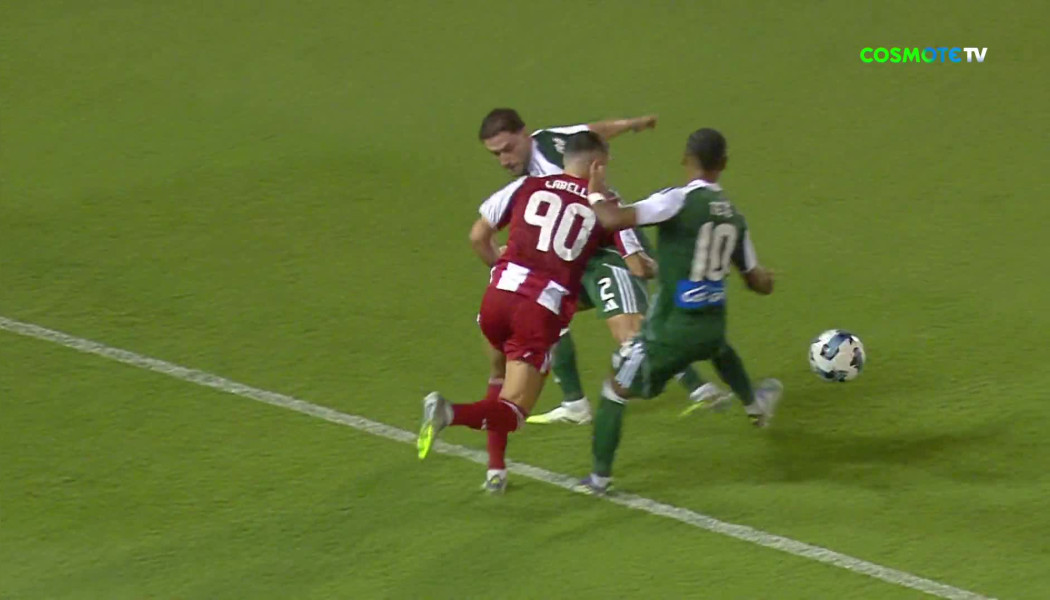 Ολυμπιακός: Στο 35' του πρώτου ημιχρόνου στη Λεωφόρο, ο Καμπελά θα βρεθεί στο έδαφος εντός περιοχής, μετά από επαφές με Τετέ και Καλάμπρια, με τον διαιτητή να δίνει κίτρινη κάρτα στον Γάλλο για θέατρο, αλλά την ίδια στιγμή τους Ερυθρόλευκους να διαμαρτύρονται έντονα θεωρώντας ότι έπρεπε να δοθεί πέναλτι.