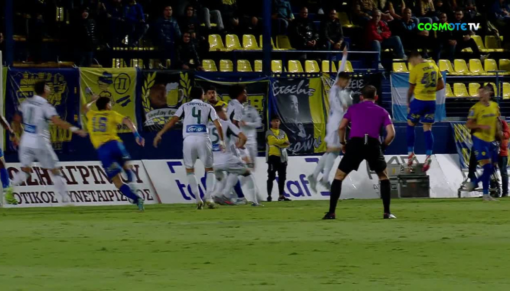 Παναιτωλικός - Παναθηναϊκός: Ο διαιτητής Τσακαλίδης δεν υπέδειξε αρχικά παράβαση, ωστόσο μετά από παρέμβαση του VAR είδε χέρι του Τσέριν στη μεγάλη περιοχή του Παναθηναϊκού μετά από κόρνερ και σφύριξε πέναλτι για τον Παναιτωλικό.