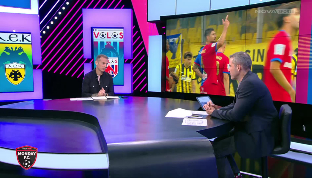 Για το γκολ της ΑΕΚ και την εικόνα του ματς: Έφυγε δεξιά η πάσα του Μάνταλου. Παίζει καταπληκτικά όμως ο ίδιος. Ήταν ίσως η μοναδική φορά που άφησε χώρους ο Βόλος και το πλήρωσε. Ο Ελίασον, έβγαλε με το δεξί μια καταπληκτική σέντρα. Πέρασε ένα ημίχρονο έτσι. Δεν ήταν καλό αλλά δεν κινδύνεψε κιόλας η ΑΕΚ. Το πρώτο ημίχρονο το πέταξε. Είχε μερικά πειράματα όπως το δίδυμο Γιόβιτς-Πιερό. Δοκιμάζει πράγματα. Αν δεν δοκιμάσει σε αυτά τα παιχνίδια, πότε θα το κάνει; Δεν πήγε καλά, έφταιγε μόνο αυτό, το δίδυμο στην επίθεση; Δεν ξέρω.