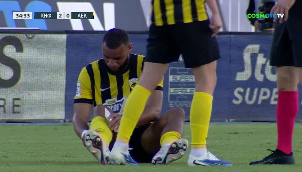 Ο Καμερουνέζος έπεσε στο έδαφος με ενοχλήσεις και το πρόβλημα έδειξε να είναι μυϊκό, με τον υψηλόσωμο αμυντικό να δυσκολεύεται ακόμα και να περπατήσει, κάτι που έχει δημιουργήσει τεράστια ανησυχία στην ΑΕΚ.