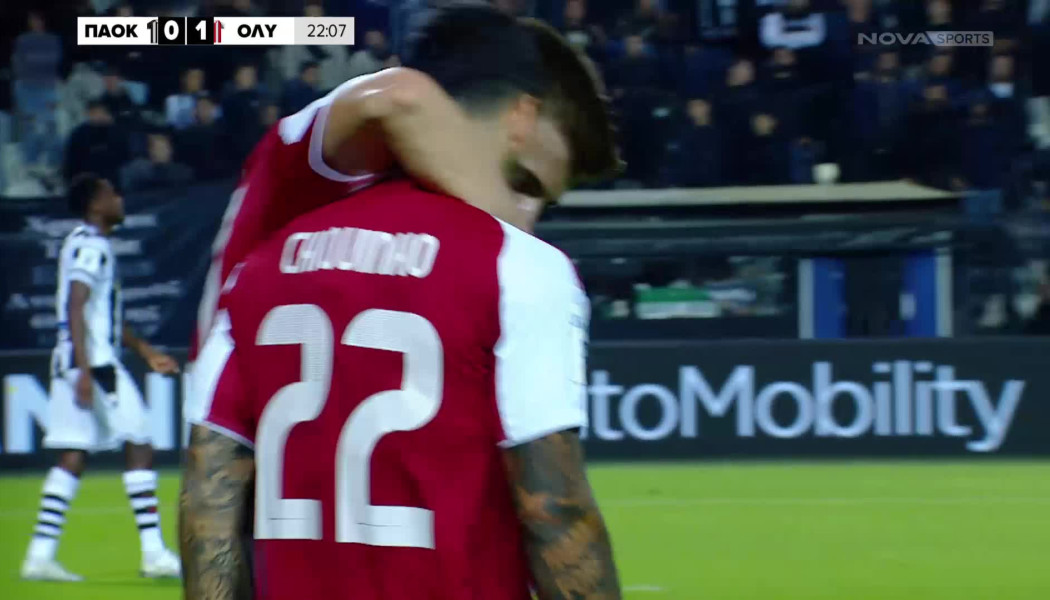 Ολυμπιακός: "Ψυχρολουσία" στην Τούμπα, μιας και στο 22' η άμυνα του ΠΑΟΚ θα ολιγωρήσει, ο Ελ Κααμπί θα πάρει την μπάλα σε πλάγια θέση και θα έχει τον χρόνο να την γυρίσει στον Τσικίνιο, που θα με σουτ από το ύψος του πέναλτι θα κάνει το 0-1.