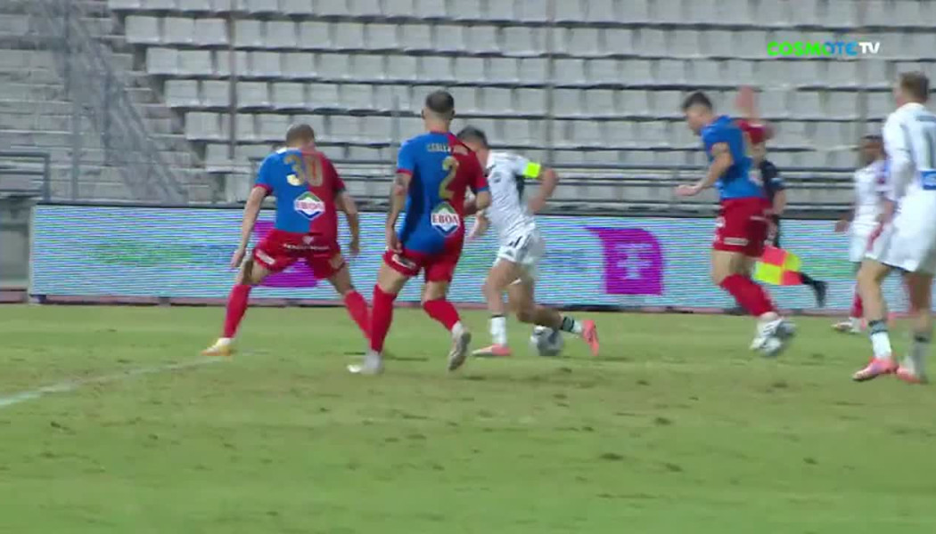 Λίγα λεπτά αργότερα ο Σέρβος πάτησε στη μεγάλη περιοχή του Βόλου και έπεσε στο χορτάρι σε προσπάθεια να περάσει αμυντικό του Βόλου, ζητώντας πέναλτι.