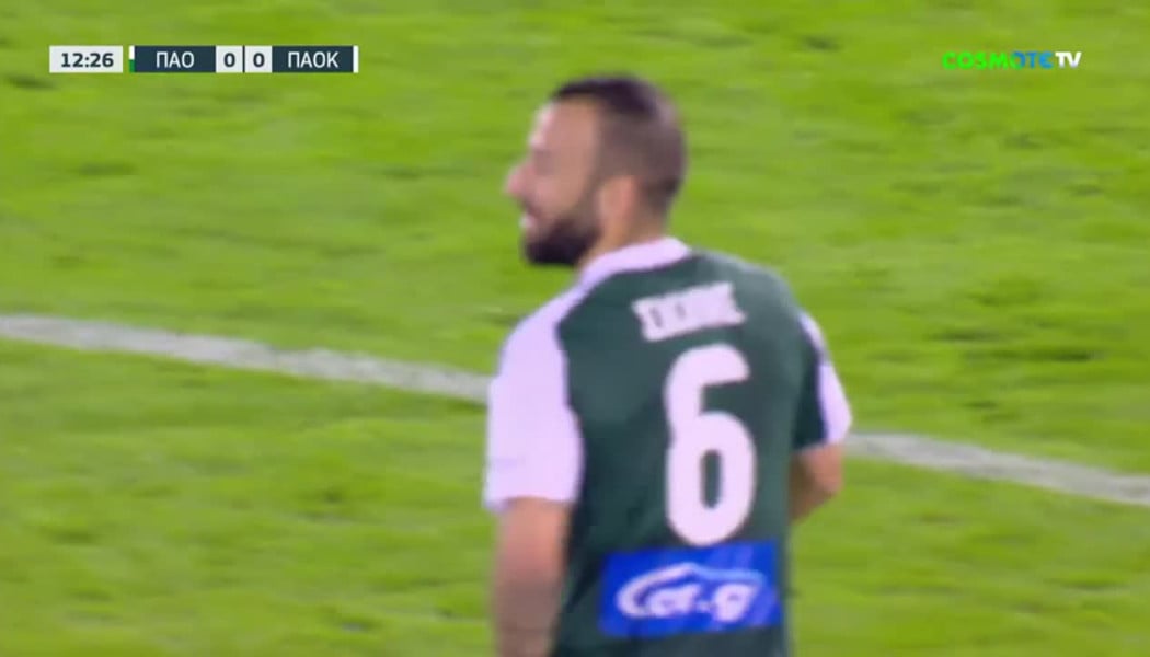 Απίθανη φάση με πρωταγωνιστή τον Έλληνα μέσο, ο οποίος λίγο έλειψε να στείλει την μπάλα στα δίχτυα του ΠΑΟΚ με σουτ από τη μεσαία γραμμή!