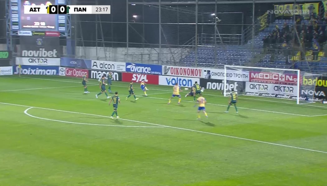 Εξαιρετική και δύσκολη απόκρουση από τον τερματοφύλακα του Παναιτωλικού, που αρνήθηκε το γκολ στον άσο του Αστέρα Τρίπολης