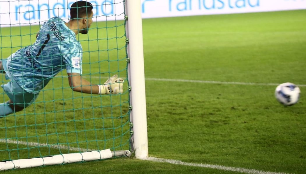Η παράβαση καταλογίστηκε μέσω VAR για ανατροπή του Τετέ από τον Πήλιο, αλλά ο γκολκίπερ της Ένωσης έδειξε τα αντανακλαστικά του.
