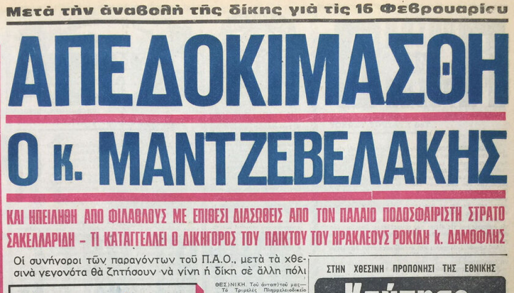 Αθλητικό Σαν Σήμερα: Στις 20 Ιανουαρίου 1976, η Θεσσαλονίκη έζησε ένα από τα πιο εκρηκτικά επεισόδια στα χρονικά των αθλητικών δικαστηρίων, όταν η δίκη για την περίφημη «υπόθεση λουλουδιών» οδηγήθηκε σε αναβολή και το δικαστικό μέγαρο μετατράπηκε σε πεδίο έντασης, με οπαδούς του Ηρακλή να ξεσπούν σε επεισόδια.