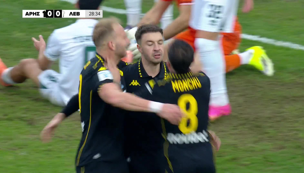 Άρης: Προβάδισμα στο σκορ, στον αγώνα με τον Λεβαδειακό, πήραν οι Κίτρινοι μιας και στο 29' μετά από φάση διαρκείας στα καρέ των φιλοξενούμενων και πρώτη απόκρουση του Λοντίγκιν, ο Μορόν θα σκοράρει μετά από δύο μήνες και θα κάνει το 1-0.