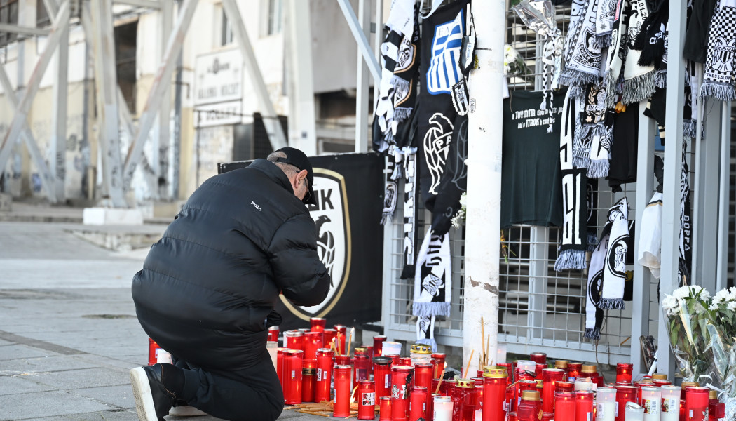 Δίπλα τους μία ακόμα φανέλα σε μαύρο χρώμα, η οποία αναγράφει ΑΘΑΝΑΤΟΙ 27/1/2026, στη μνήμη όσων χάθηκαν στο δρόμο για να βρεθούν στο πλευρό της αγαπημένης τους ομάδας.