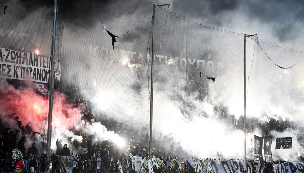 Συγκλονιστικές εικόνες στο γήπεδο της Τούμπας, καθώς με την έναρξη του αγώνα με τον Πανσερραϊκό εκατοντάδες πυρσοί άναψαν στη Θύρα 4 στη μνήμη των αετόπουλων.