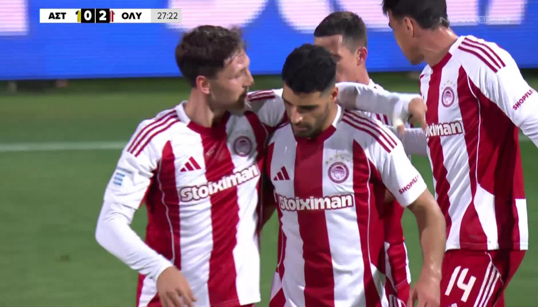 Ολυμπιακός: Έχοντας και την τύχη με το μέρος τους οι Ερυθρόλευκοι βρίσκουν και δεύτερο γκολ κόντρα στον Αστέρα, στην Τρίπολη, όταν στο 27' ο Ποντένσε πάσαρε στον Ταρέμι, που έκανε το σουτ, η μπάλα κόντραρε πάνω Σίπσιτς και πήρε περίεργα φάλτσα, με τον Τσιντώτα να αιφνιδιάζεται και έτσι να γίνεται το 0-2.