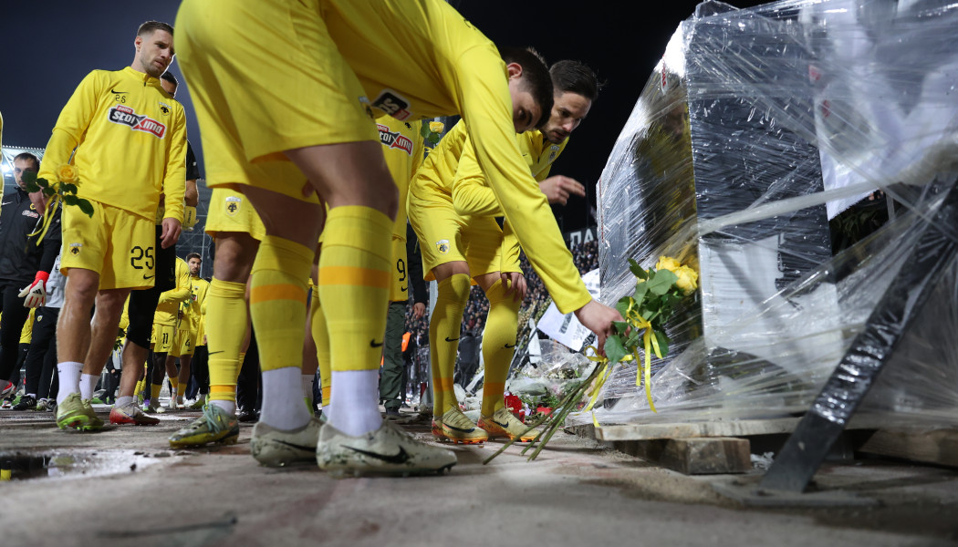 Οι παίκτες της Ένωσης πήγαν προς τη Θύρα 4 και κατέθεσαν κίτρινα λουλούγια στη μνημη των 7 οπαδών των Θεσσαλονικιών που έχασαν τη ζωή τους στη Ρουμανία, ταξιδεύοντας για το ματς με τη Λιόν στη Γαλλία για το Europa League.