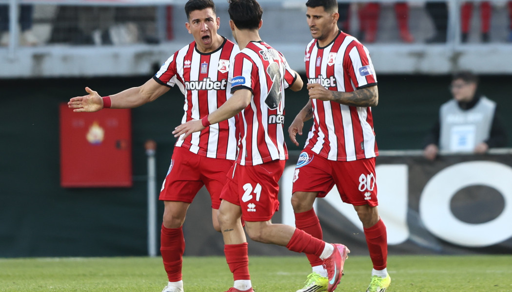 Πανσερραϊκός - Ολυμπιακός: Ο Αγιούμπ Ελ Κααμπί φάνηκε να "κλειδώνει" τη νίκη του Ολυμπιακού με δύο γκολ, όμως η ομάδα των Σερρών ξαναμπήκε στη διεκδίκηση ενός βαθμού, με τον Βερνόν Ντε Μάρκο να μειώνει σε 2-1 με αριστερό σουτ στο 82.