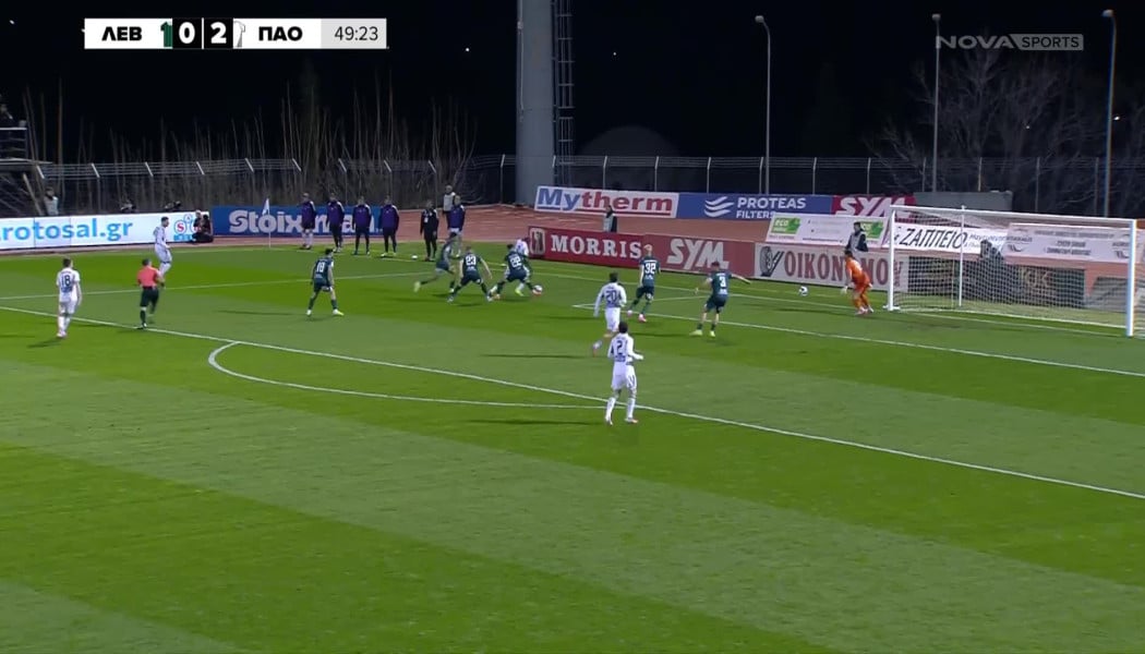 Παναθηναϊκός: Οι Πράσινοι με την έναρξη του δευτέρου ημιχρόνου θα βρουν και τρίτο γκολ στην έδρα του Λεβαδειακού, όταν στο 50' μετά από λάθος του Τσοκάι, μέσα στην περιοχή, ο Τετέι θα πασάρει στον Κοντούρη, με τον τελευταίο να κάνει δυνατό σουτ και να διαμορφώνει το 0-3.