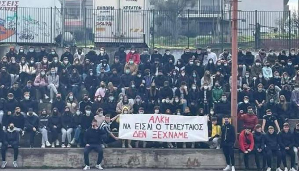 Μια φωτογραφία από το 2022, αμέσως μετά τη δολοφονία του Άλκη Καμπανού, δείχνει τον Κλεομένη –μαθητή Λυκείου τότε– να κρατά ένα πανό ενάντια στην οπαδική βία. Ένα παιδί που ονειρευόταν ένα ποδόσφαιρο χωρίς αίμα, κατέληξε να είναι ο επόμενος στη μακρά λίστα των θυμάτων.