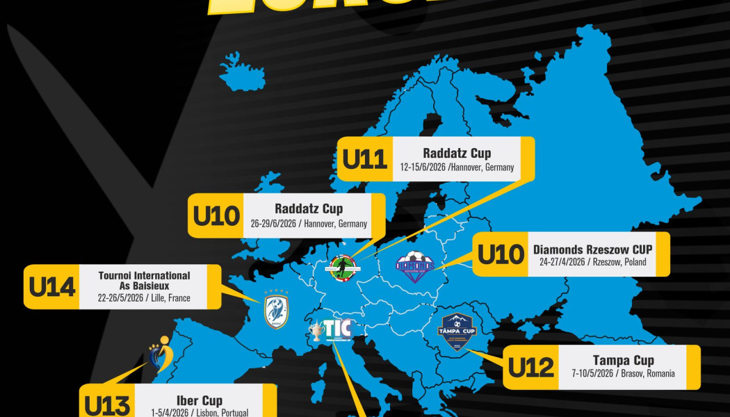 Το πρόγραμμα της ευρωπαϊκής παρουσίας της Ακαδημίας είναι πλούσιο και εκτείνεται σε πολλές χώρες της ηπείρου. Οι ομάδες Κ16 και Κ15 θα ταξιδέψουν στην Ιταλία για το Torino International Youth Cup, το οποίο θα διεξαχθεί από τις 11 έως τις 14 Ιουνίου 2026. Η Κ14 θα συμμετάσχει στο Tournoi International As Baisieux στη Λιλ της Γαλλίας, από τις 22 έως τις 26 Μαΐου 2026, ενώ η Κ13 θα βρεθεί στη Λισαβόνα της Πορτογαλίας για το Iber Cup, από την 1η έως τις 5 Απριλίου 2026.