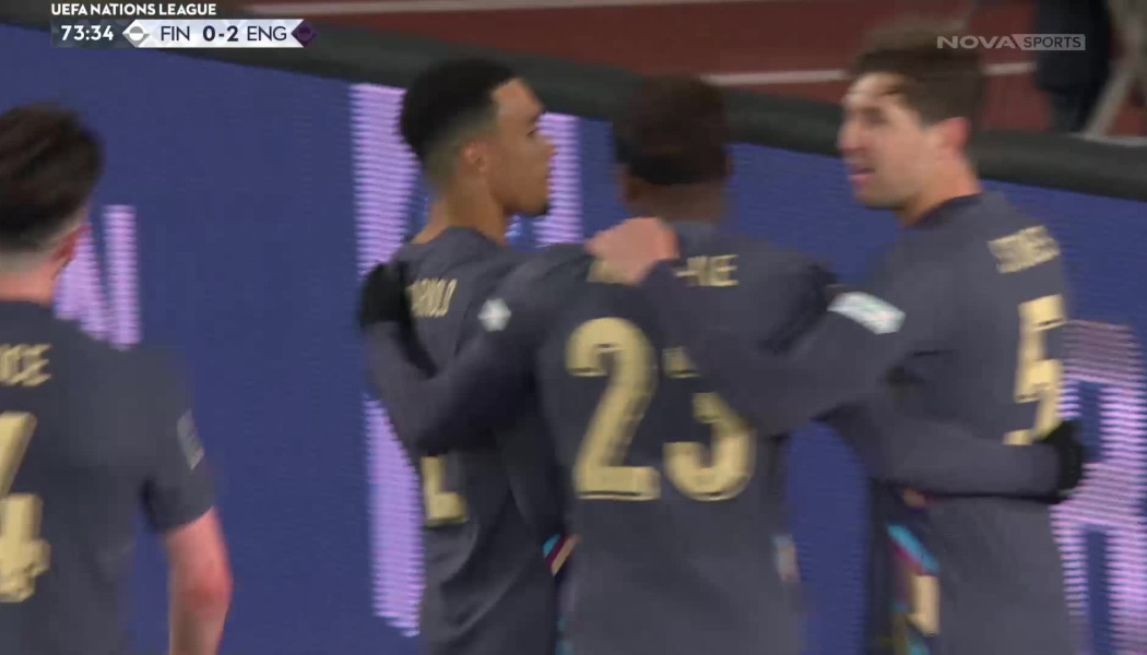Με αρκετές αλλαγές στη σύνθεσή της σε σχέση με τον αγώνα εναντίον της Ελλάδας, η Αγγλία εμφάνισε πολύ καλύτερη αγωνιστική εικόνα και πέρασε εύκολα από το Ελσίνκι με 3-1 επί της Φινλανδίας. Ο Τζακ Γκρίλις στο 18΄, ο Τρεντ Αλεξάντερ-Άρνολντ με απευθείας φάουλ στο 74΄ και ο Ντέκλαν Ράις στο 84΄ χάρισαν τη νίκη στα «Τρία Λιοντάρια» που παραμένουν στο «κυνήγι» της εθνικής μας για την πρώτη θέση του Β΄ ομίλου στη Β΄ κατηγορία του Nations League.
