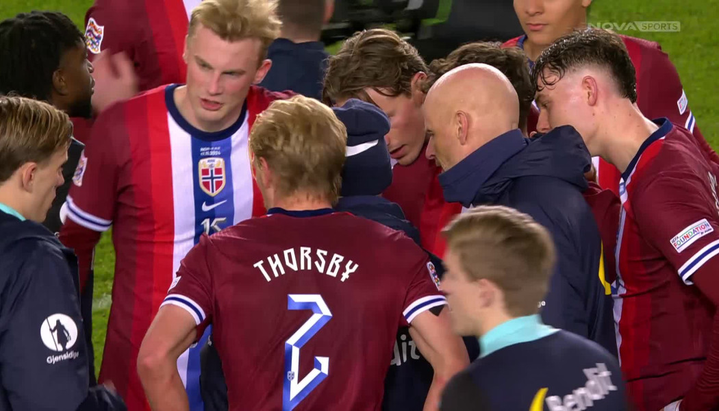 Μόλις το παιχνίδι έληξε ισοπαλία όλη η αποστολή της Νορβηγίας πανηγύρισε έξαλλα την άνοδο στην League A του Nations League.