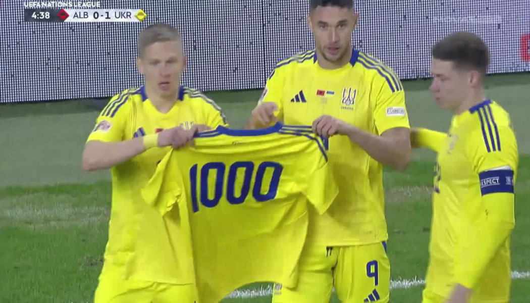Η Ουκρανία πανηγύρισε το πρώτο γκολ με ένα μπλουζάκι που τιμά τις 1.000 ημέρες από την έναρξη του πολέμου